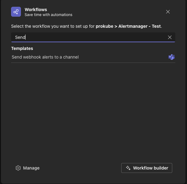 To setup Teams, create a channel to receive alerts or use an existing channel. Click on the menu of the channel and go to Workflows.